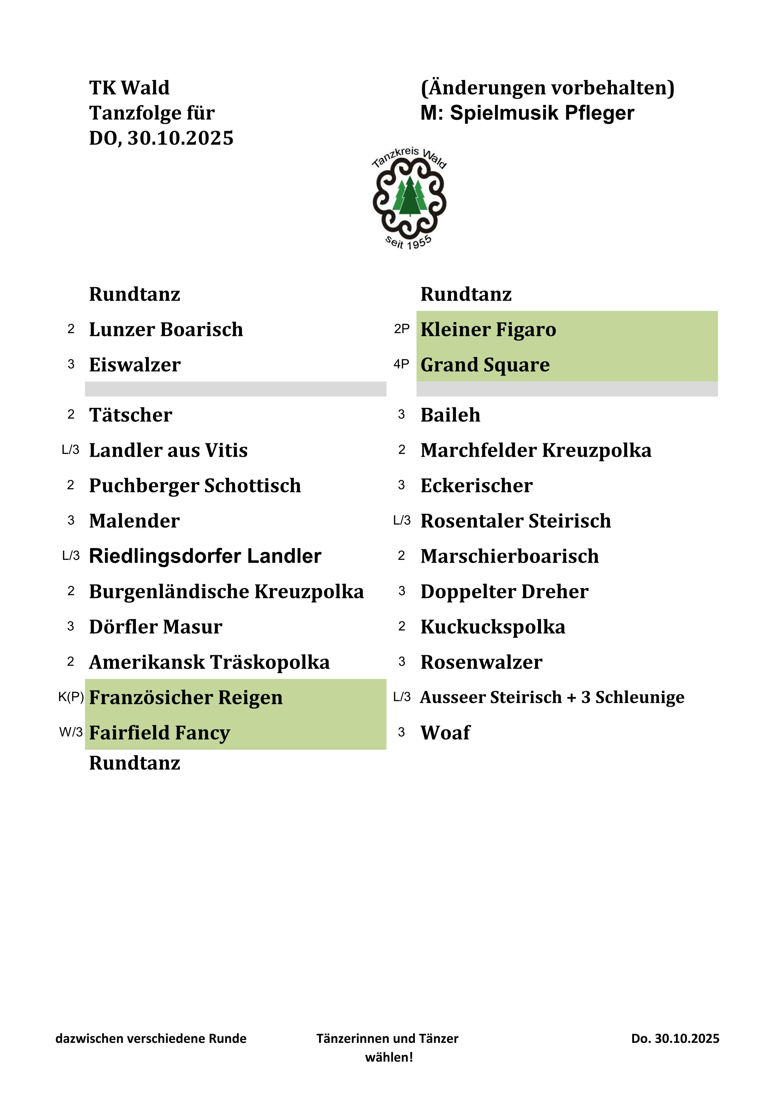 Tanzfolge 30.10.2025